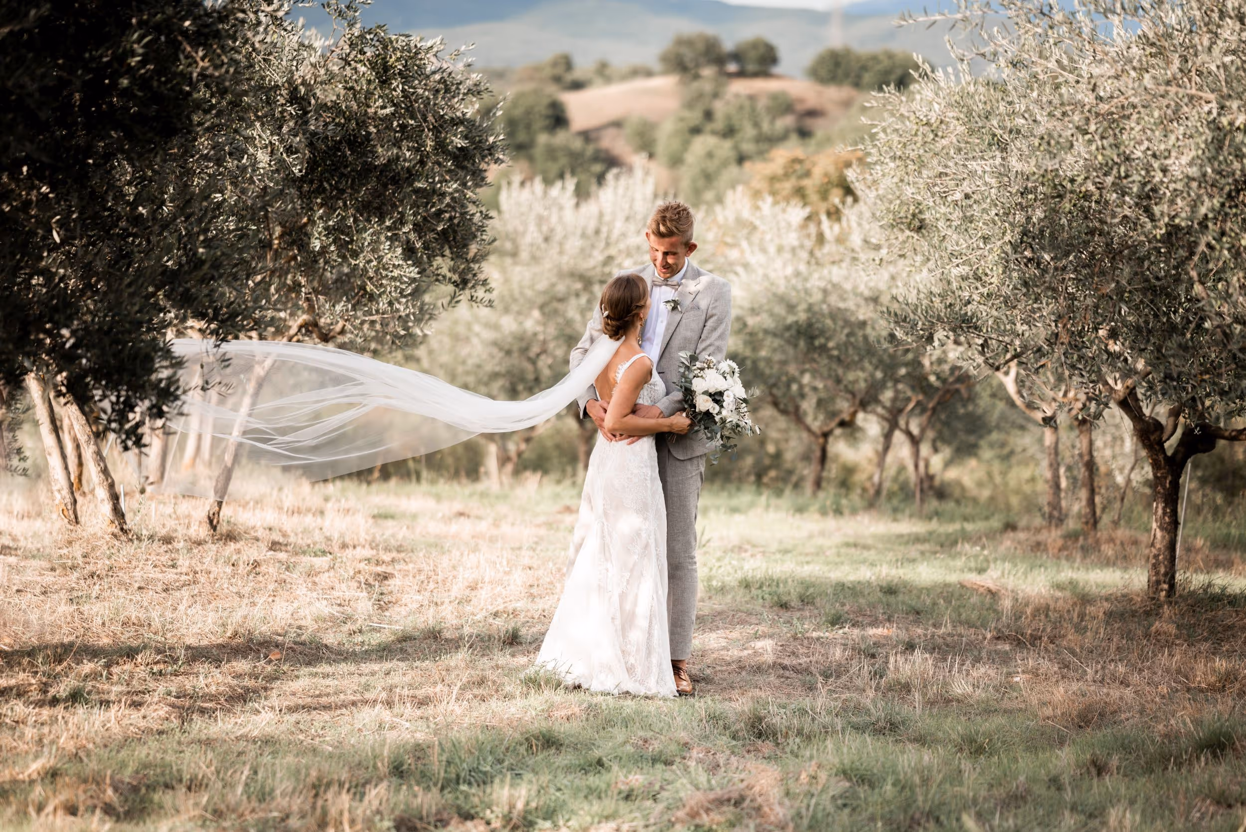 Chiara & Lukas celebrated their wedding in the heart of Tuscany, surrounded by rolling hills, ancient olive groves, and the quiet beauty of the Italian countryside. Their day flowed effortlessly — from intimate moments beneath the trees to a long, candlelit dinner where conversations stretched, laughter echoed, and time gently slowed down. The atmosphere was warm and unpretentious, deeply romantic yet relaxed — a celebration rooted in connection, simplicity, and the joy of being fully present with the people they love.