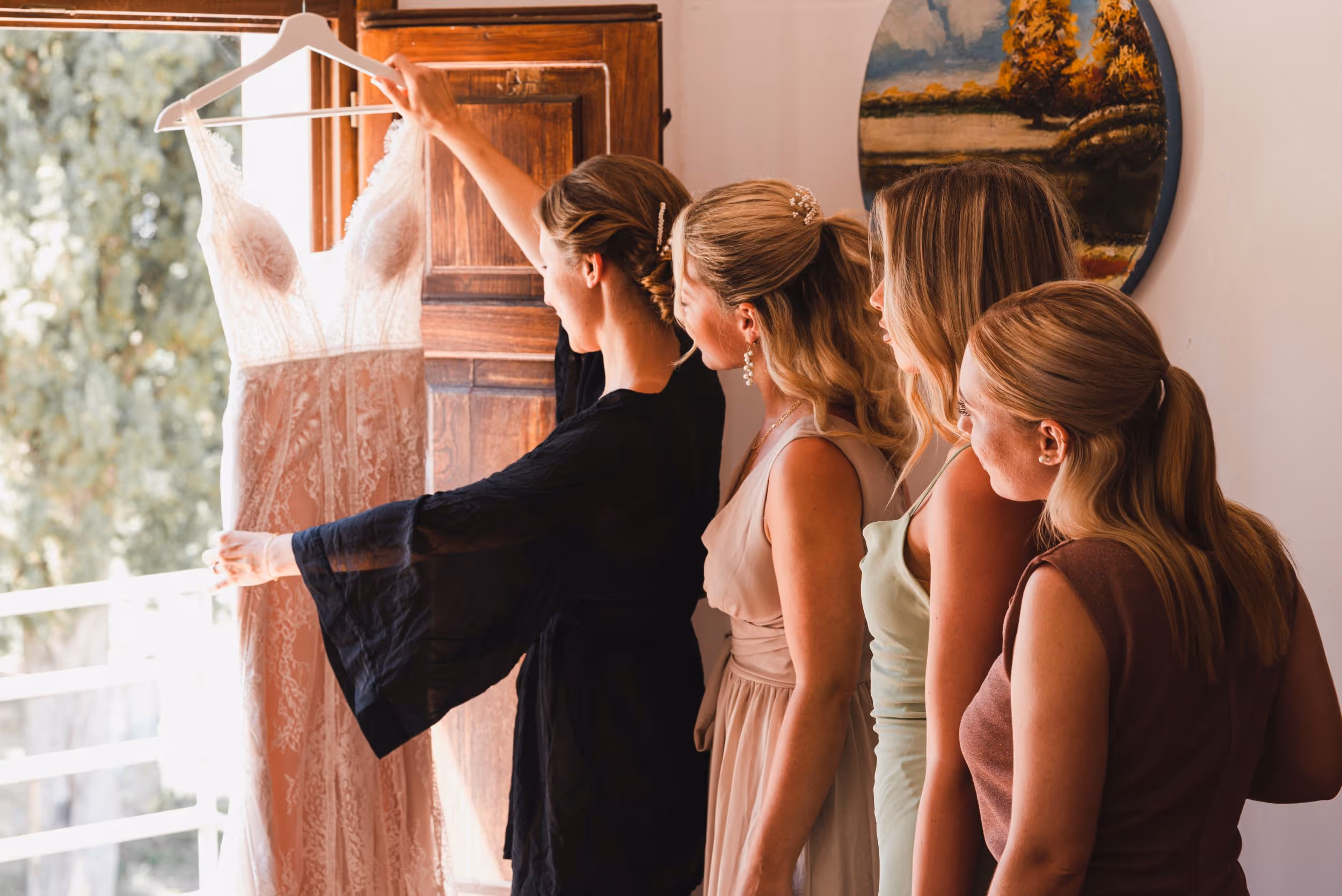 Think sun-faded neutrals, natural linen tones, soft whites, and gentle greenery woven through every detail. Olive branches, wooden tables, flowing fabrics, and golden afternoon light created a setting that felt organic, timeless, and quietly luxurious.